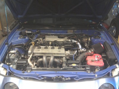 Bilen er i utgangspunktet en helt vanlig 1996 Celica 1.8L med 7A-FE motoren, men denne ble i 2000 eller 2001 ombygget til turbo av Toyota Mysen etter at de fikk den i innbytte av en eldre mann som hadde kjøpt den ny, rett og slett bare for å se om det gikk, slik jeg forsto det, så det har blitt betalt effektøkning til 117kw av toyota selv. Han jeg kjøpte denne av kjøpte den så av Toyota ikke lenge etter ombygginga, men etter et års tid eller noe så blåste han toppen eller hva det var av den, så da satt han virkelig i gang. Han fikk KRB Trading til å bygge skikkelige greier ut av den, så det vil si at så og si alt av innmat i motor og slikt et byttet. En helt komplett spec liste har jeg ikke, men skal se om jeg klarer å få tak i.