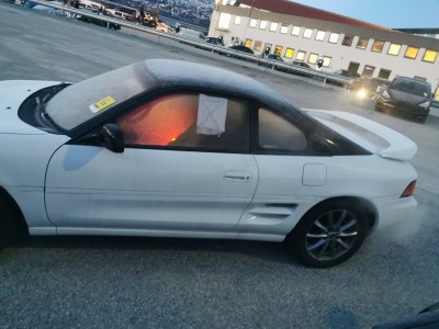 Bilen har en halvcrazy Japansk (dvs halvdårlig) lakkjobb. Lakken er full av glitter/flakes, med sånn OK resultat. Ergo er det derfor mer som taler for å ikke bruke tid på å få skilter og registret denne. SW20 kler faktisk hvitt sort lakktematikk sånn som denne har, skulle nesten ønske Smokey var hvit nå