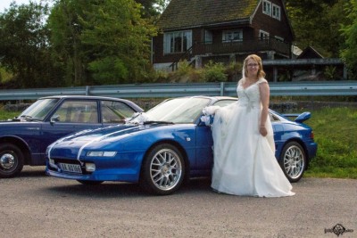 Nå skal vel egentlig bryllupsbil ha egen sjåfør, så brud og brudgom kan slappe av i baksetet. Men mr2en gjorde jobben bra den også 8)