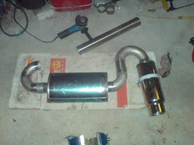 Da har jeg 'endelig' fått rota meg til å begynne på eksosen. Rapper designet til Erling i håp om at min og kan gå stille nok til koseturer og langkjøring igjen. :lol:
