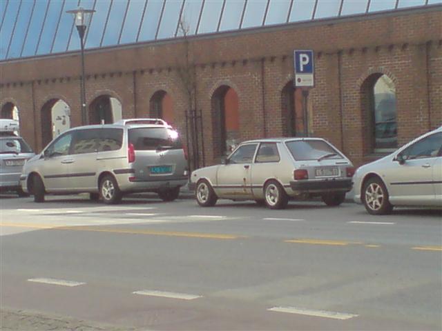 Første forsøk med R-dekk inkl 3mm spacer for klaring innover gav bil med skjermene hvilende på dekket, og planker under hjula for å kunne få ut jekken under bunnpanna.