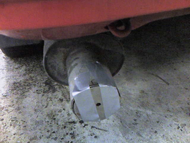 Nå har jeg fått av EU-eksosen også, var digg. :D Lånte en cat. av en på jobben, som var 1,5" inn og ut, så da ble det overgang fra 3"-1,5"-3" igjen, med en but-plug i enden :P Var for å få ned lyden, lagde et skrufest så jeg kunne skru den fast inni potta, funka ganske bra egentlig :wink: