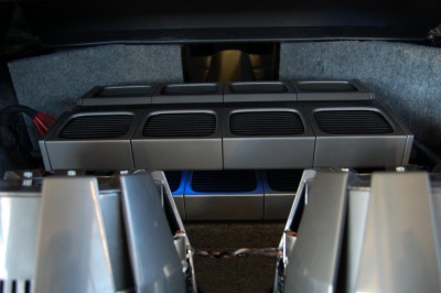 Delefiltrene til høyttalerne skal stå på venstre side (der alle høyttalerkablene kommer ut av noen hull i platen). Disse skal også etter planen forsynes med litt belysning.
