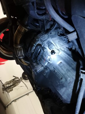 Her er forresten noen bilder fra undersiden av SW20. Ble litt vanskelig mtp eksos og andre ting som var i veien. Kassa er ca 42cm i bredde, med 2cm klaring til rammevange. Rammevange er allerede hulet ut til å passe kassa, så DSG kassa bør ikke være vesentlig større i omkrets eller være lengre enn 42cm.