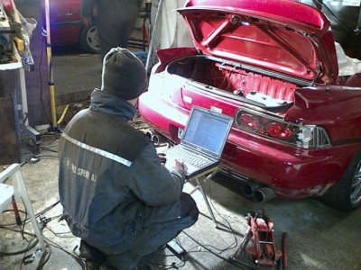 I går/natt fikk vi koblet om slik at nå styrer datasprutet tenning OG bensin. Først satte vi det opp så datasprutet styrte bensin og orginal ECU tenning, for å forsikre oss om at bensinstyringen var riktig og funket OK først. Nå styrer datasprutet både Tenning og bensin. Brukte en stund på å finjustere det hele, men nå funker alt fint! :) Tomgangen er skikkelig fin og den går finere enn noen gang! ;)