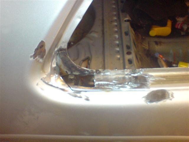 Har "ny" høyre dør. Venstre er et stort usikkerhetsmoment pr. nå da jeg ikke har klart å få fatt i noe. Blir mest sannsynligvis en noe kreativ midlertidig lapping i påvente av at noe dukker opp.... :roll: