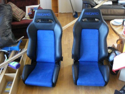 Prøvde å tilpasse de orginale supra skinnene til å passe på Recaro stolene i dag, men må nok bygge de ut en liten centimeter, skinnene butter i stolen når stolen skal dras frem å tilbake, blir nok greie på det...