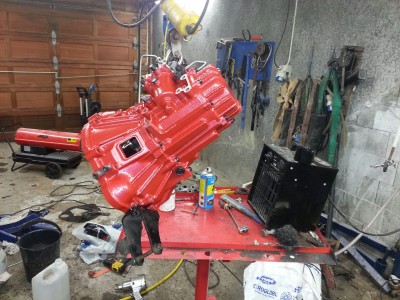 Der var girkassa slipt ned med roterende fil på drillen , glassblåsing og lakket 3 strøk , for en drittjobb og garasjen ser ut deretter , nå må det ryddes og organiseres , til uka blir motoren satt sammen antar jeg :-)