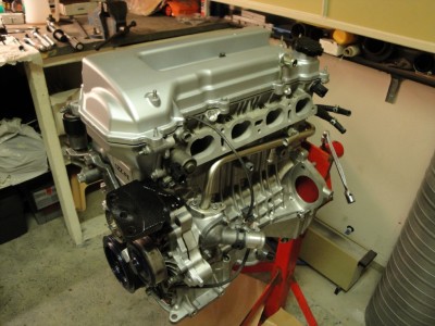 Toppen og kammer er montert, register er vel så å si ferdig med olje pumpa på plass. Topplokk og side deksel er lakkert.