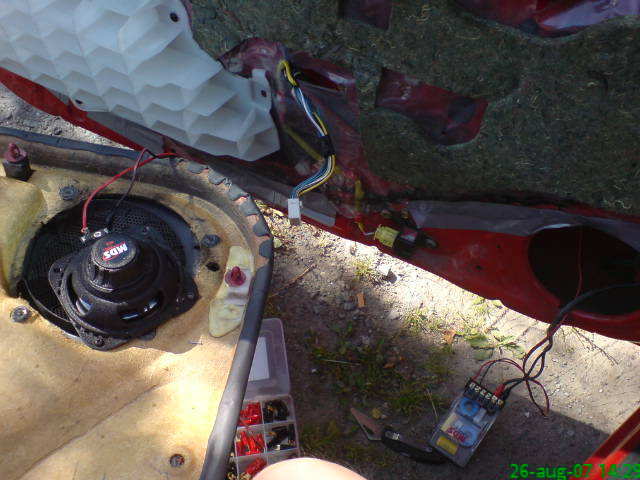 Monterte et frontsett fra mds idag da jeg har funnet ut at jeg vil kvitte meg med det kjipe orginal anlegget.. ble ferdig med stort sett alt idag men ble stoppet ganske brått da jeg ikke kunne finne mulitpluggen til den nye bilspilleren :evil: ... må nok ta en tur og kjøpe en til mandag da saker og ting har en mystsk tendens til og forsvinne fra jorden overflate i garasjen min :roll: