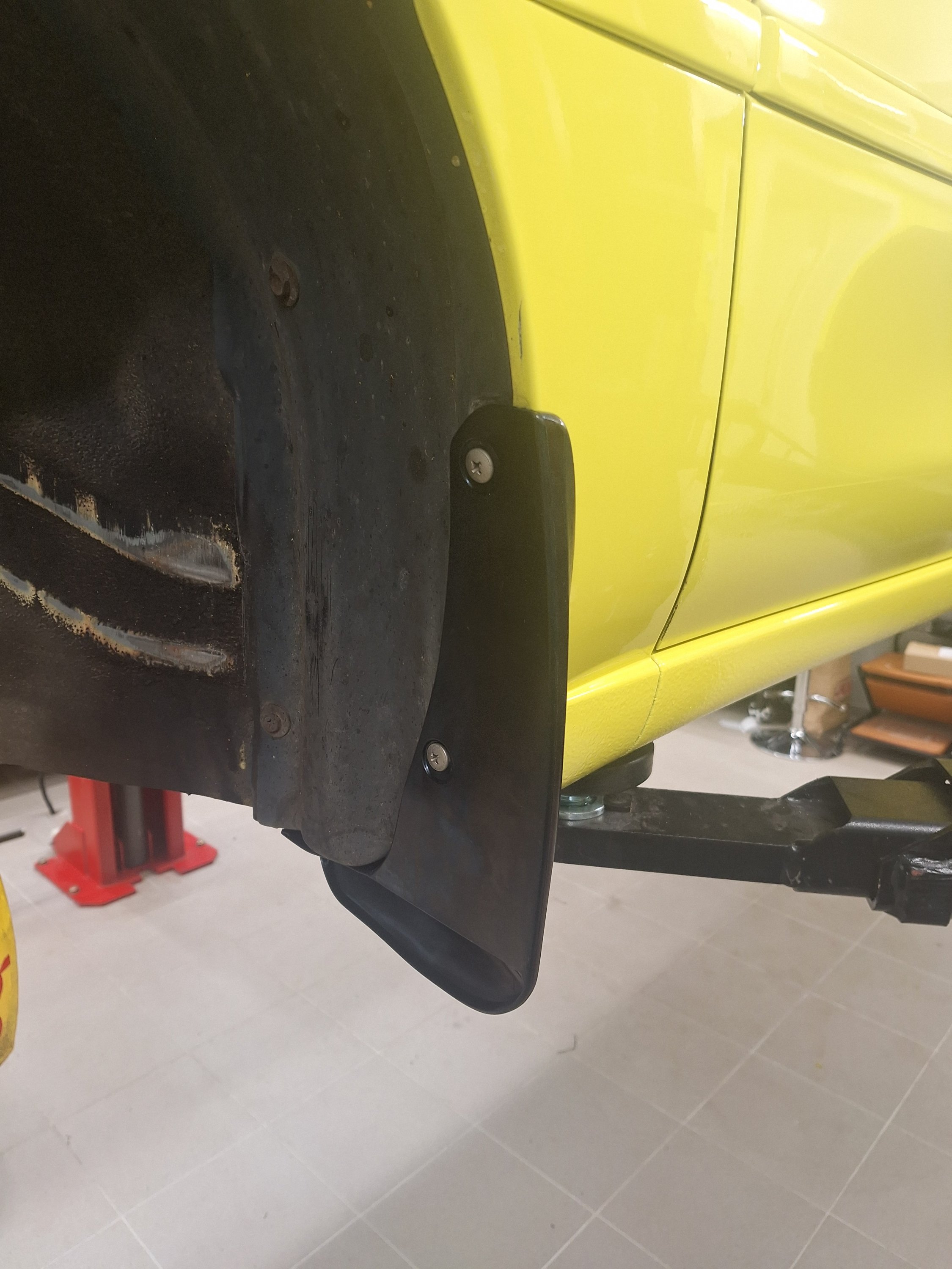 Smalt også på noen skvettlapper foran, for å spare lakken på kanaler.