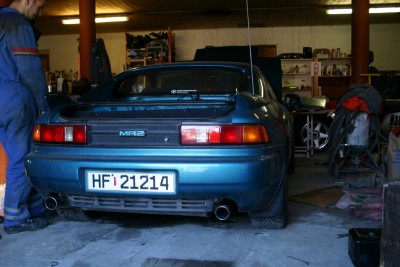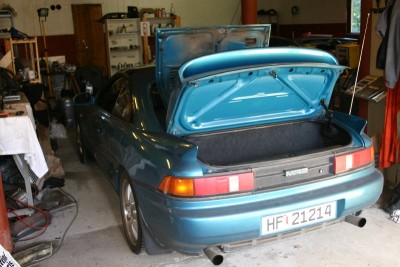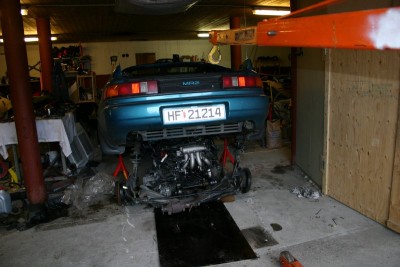 Vi hadde fått ut den gamle og satt i den nye i løpet av en dag. Utover kvelden begynte vi og skulle koble til og lufte clutch etc, men vi fikk litt trøbbel der, så vi fortsatte neste dag. Var vel ferdig med all tilkobling, lufting av bremser og clutch, testkjøring, olje/kjølevæske etc, dra på toyota og kjøpe nye plugger, osv i 17-18 tida neste dag.