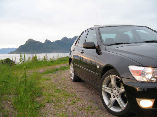 Dette er da min lexus is200 sport :) Den har autolatgear, noe som jeg trives overraskende godt med. Deilig bil å kjøre med :) Ellers er den helt orginal bortsett fra TTE-sportspotte. Delskinn og alt elektrisk er jo en selvfølge :wink: Jeg kan si at dette er hvertfall en god erstatning nå som Mr2-en er stalla inntil videre :D