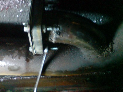 Laga ei plate for å tette der røret fra WG har gått inn på eksosen