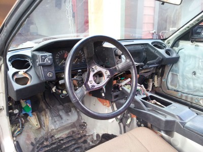 jeg begynte å demontere bilen, for lakkering og bytte av interiør. (har montert hoveddelen av dashbordet og midtkonsollen ligger løst.)