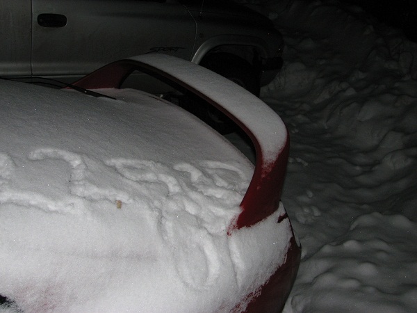 De siste dagene har jeg brukt supra'en til litt leking på parkeringsplasser ol, og den har derfor stått ute. Når jeg kom hjem i sta så jeg at noen hadde tegna i snøen på bilen og ble ganske pissed, jeg sprada bort for og se om det var noen riper i den allerede så shabby lakken min, men ble straks i litt bedre humør :)